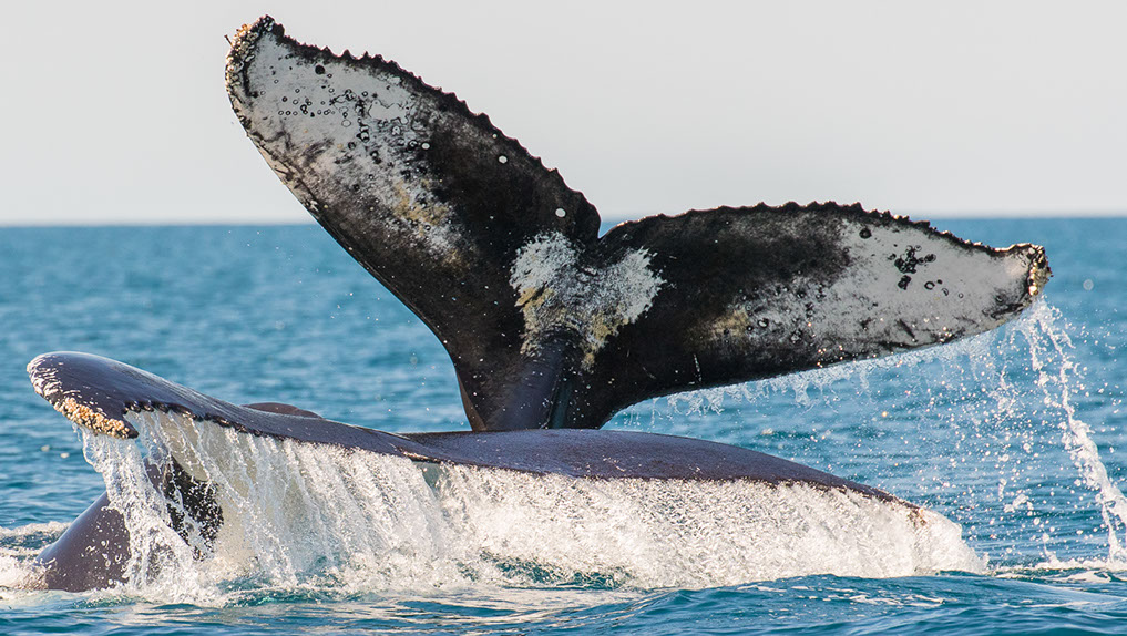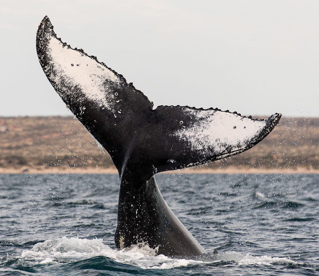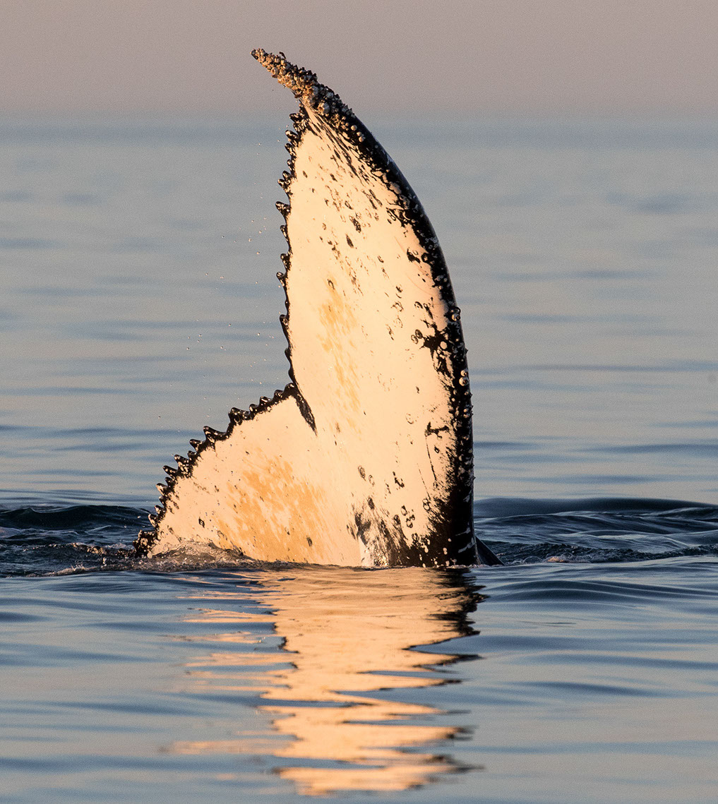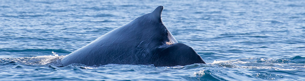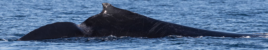 This was a male escort travelling with a mother and calf. The lack of scarring pointed to possibly an old entanglement injury. As bad as it looks the whale seemed to be moving freely and even gave us a cheeky fluke.