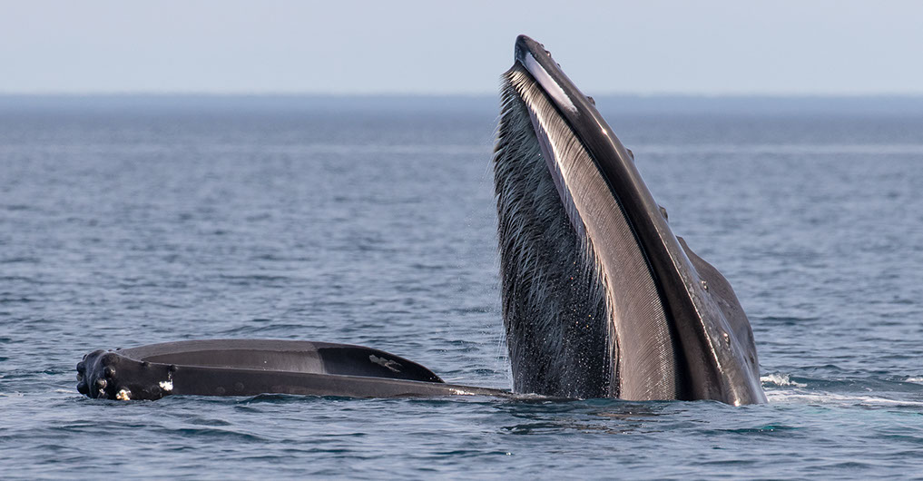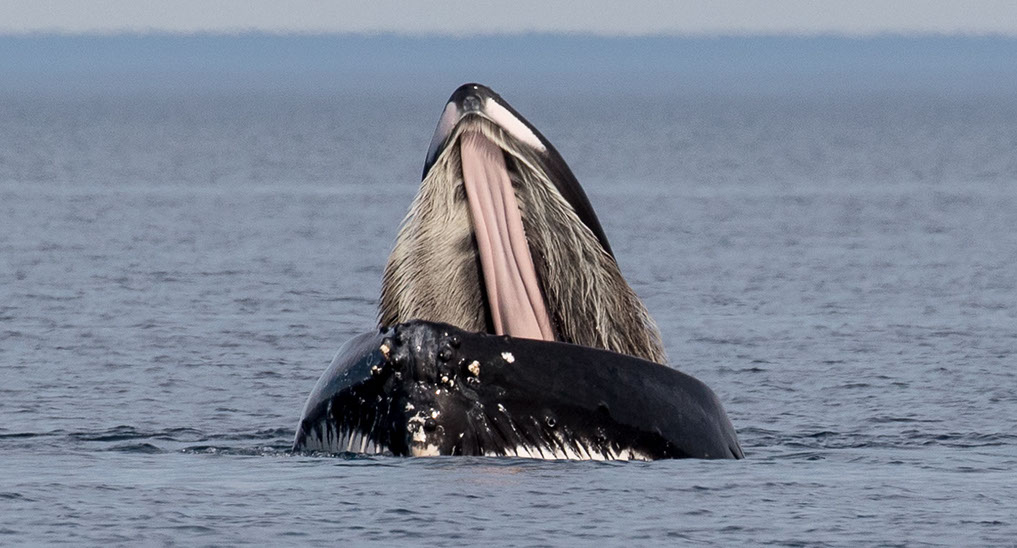 We have never been to to the feeding grounds so this was our first observation of this unusual behaviour. We have seen calves jaw clapping previously but this whale was clearly taking on water and the throat was distended.
