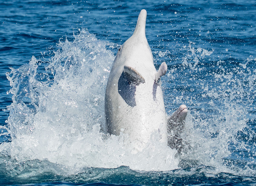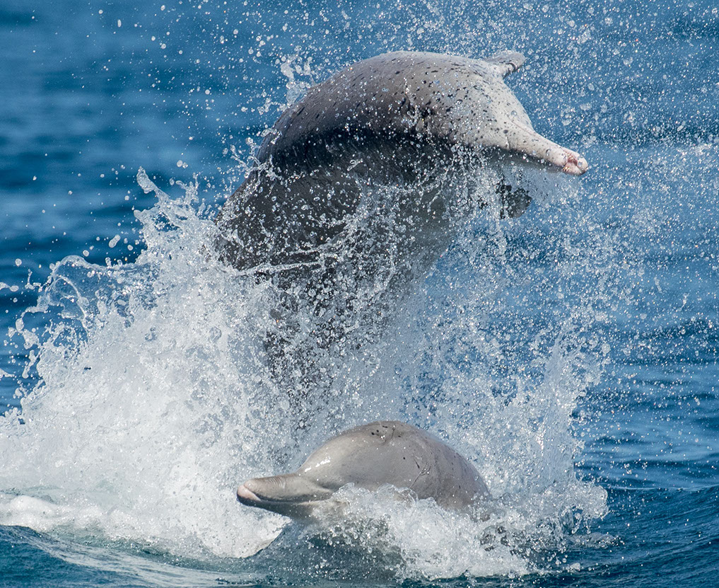 These surface active cetaceans are Australian humpback dolphins (Sousa sahulensis) and were only recognised as a separate species in 2014.